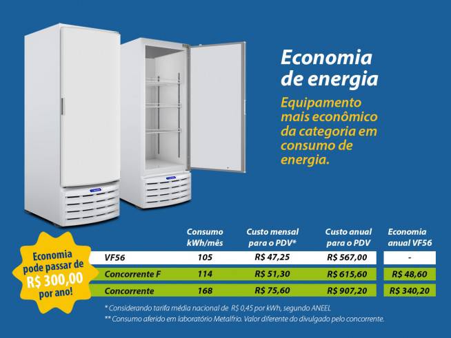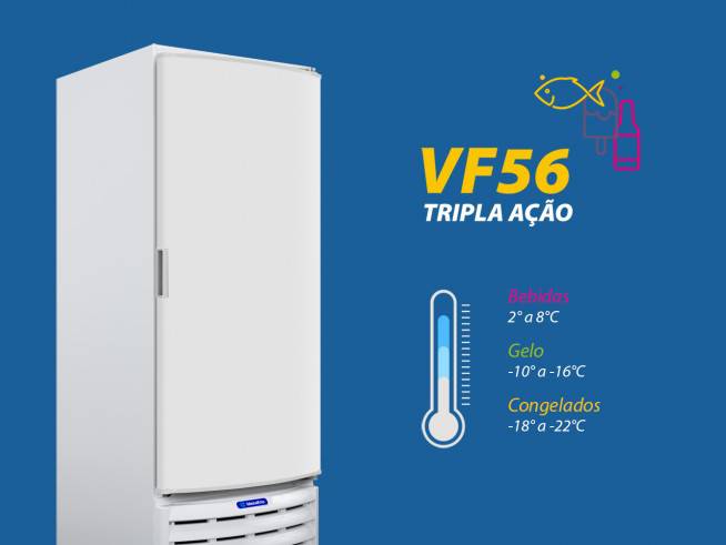 O VF56 é o modelo mais versátil da Metalfrio. São tres faixas de temperatura que se adaptam à sua necessidade - congelar, refrigerar ou conservar.